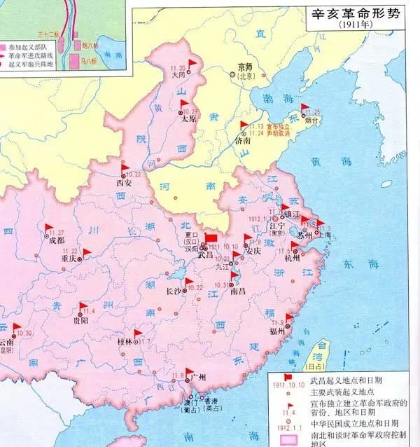 1911年10月10日,辛亥革命爆发。多省发布通电脱离清朝管控,革命党人在南京成立了中华民国临时政府,成为亚洲第一个共和制国家。