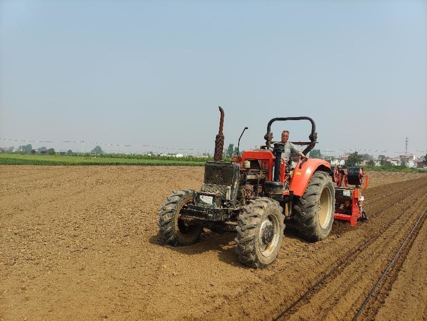 4月20日,二十四节气之谷雨,郏县广阔天地乡大程庄村农机手杨国献在自己预留的50亩春地里,驾驶着大型拖拉机牵引着免耕施肥精量玉米播种机播种春玉米,拉开了全县春玉米机械化播种序幕。周边农机大户、操作机手及附近群众现场观摩。