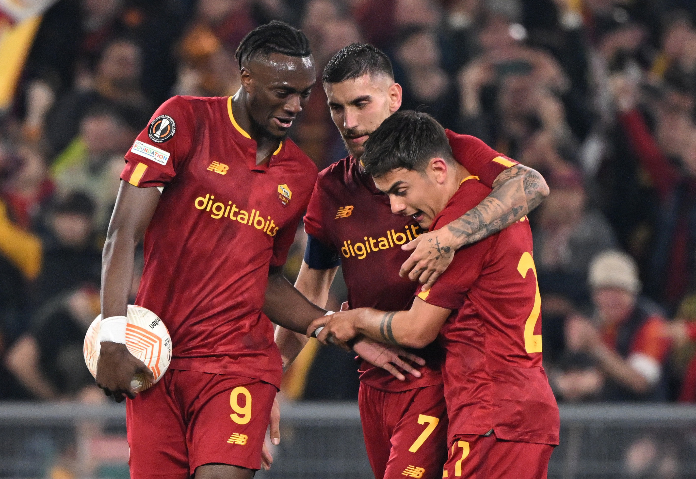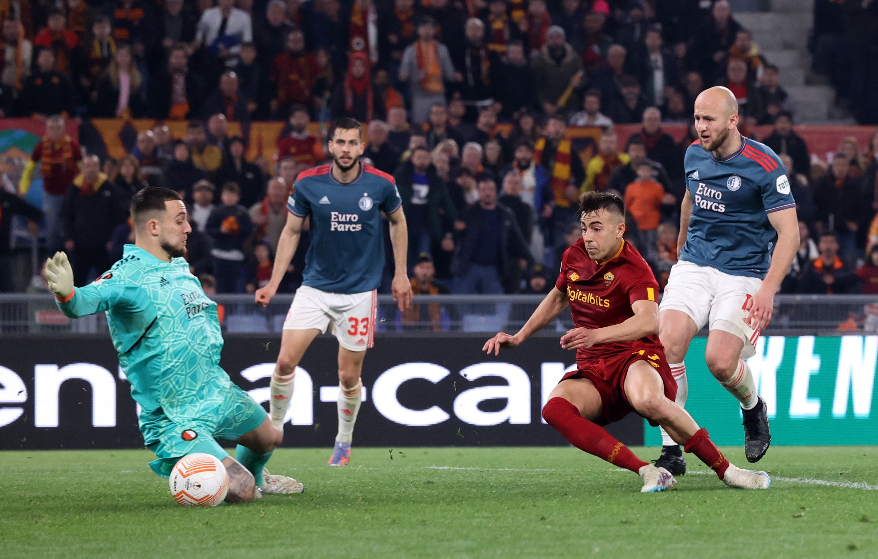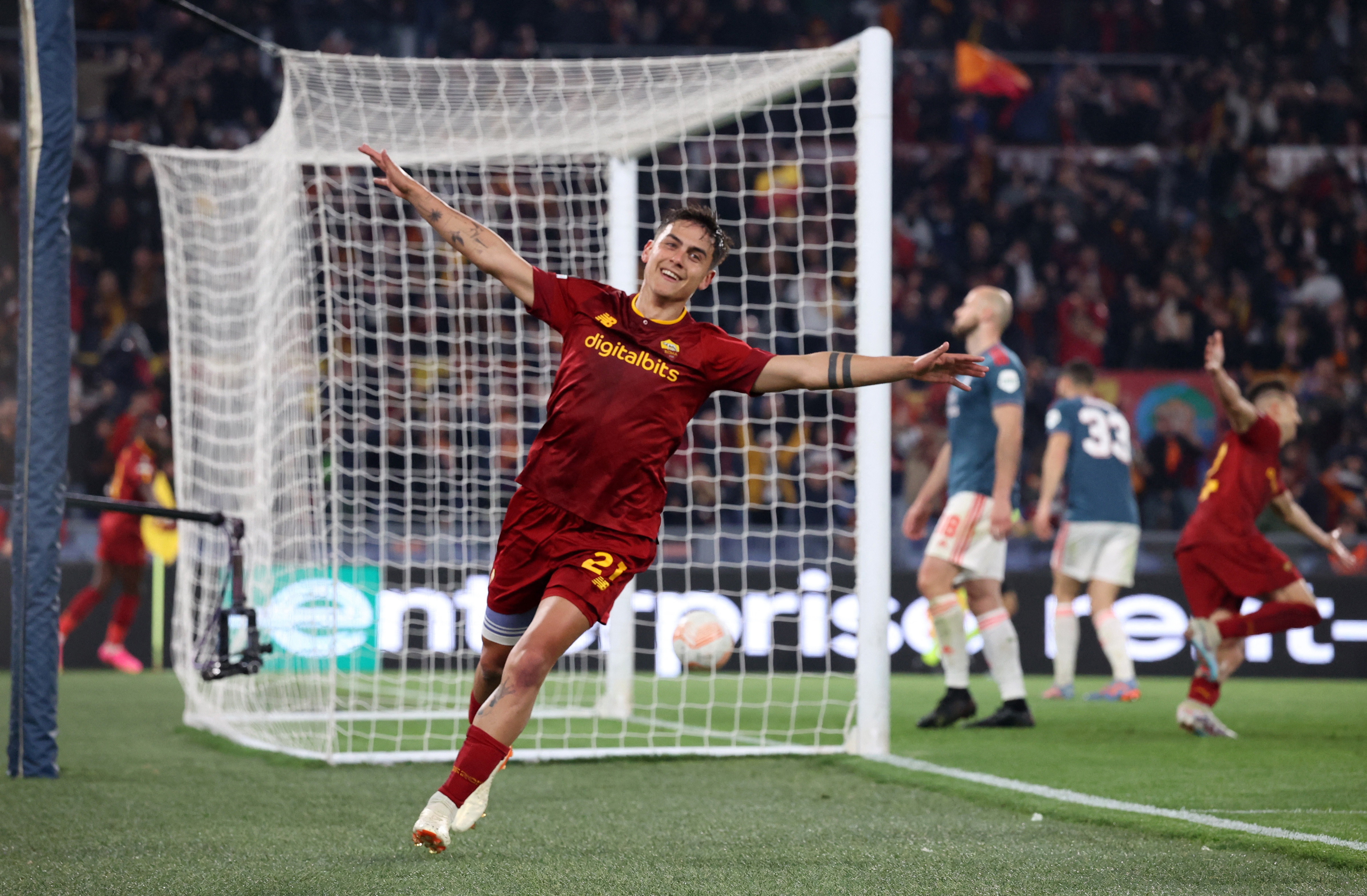 当日,在2022-2023赛季欧联杯四分之一决赛次回合比赛中,意甲罗马队主场以4比1战胜荷甲费耶诺德队,以两回合总比分4比2晋级四强。
