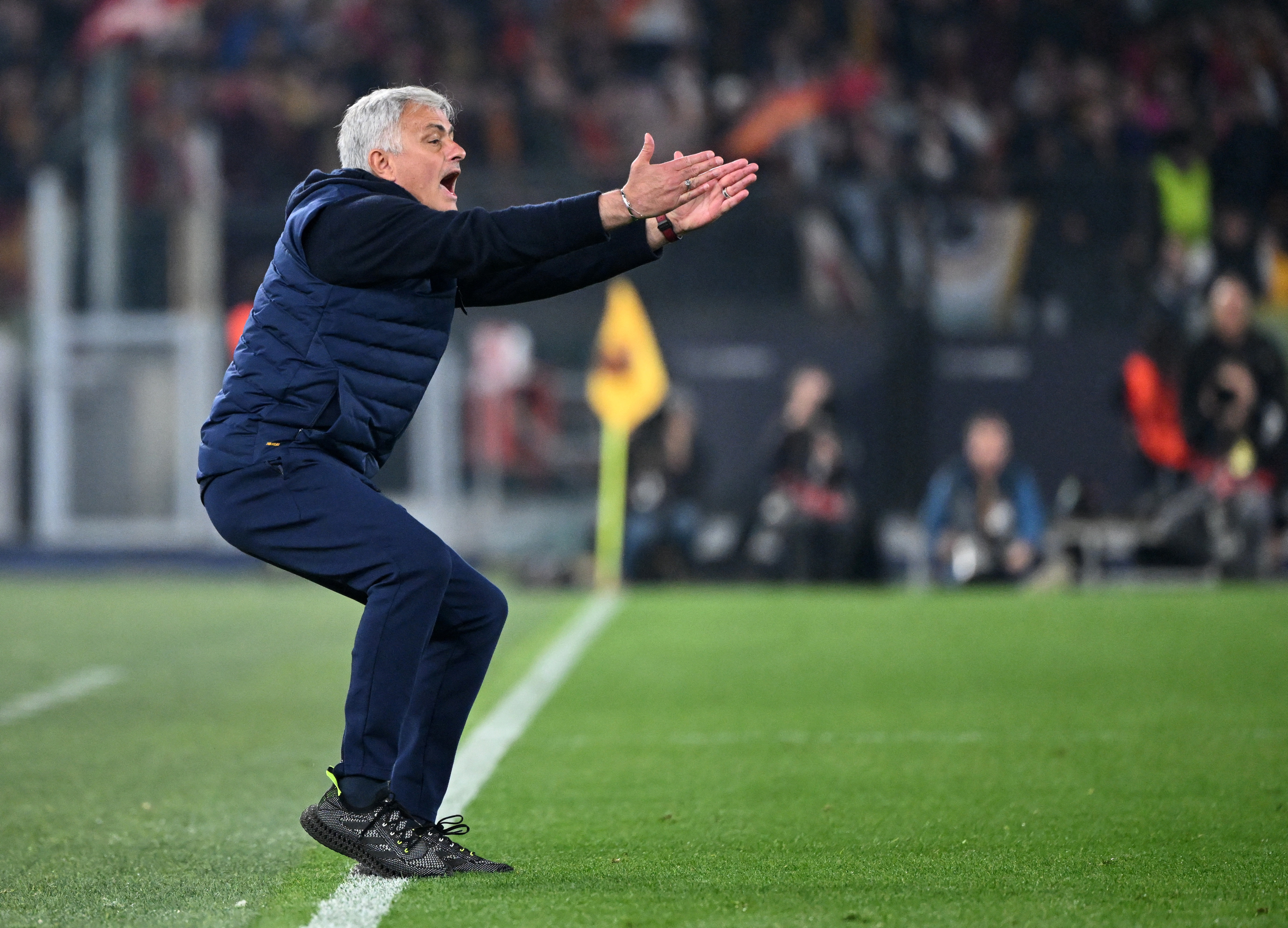 4月20日,罗马队主教练穆里尼奥在场边指挥。新华社/路透