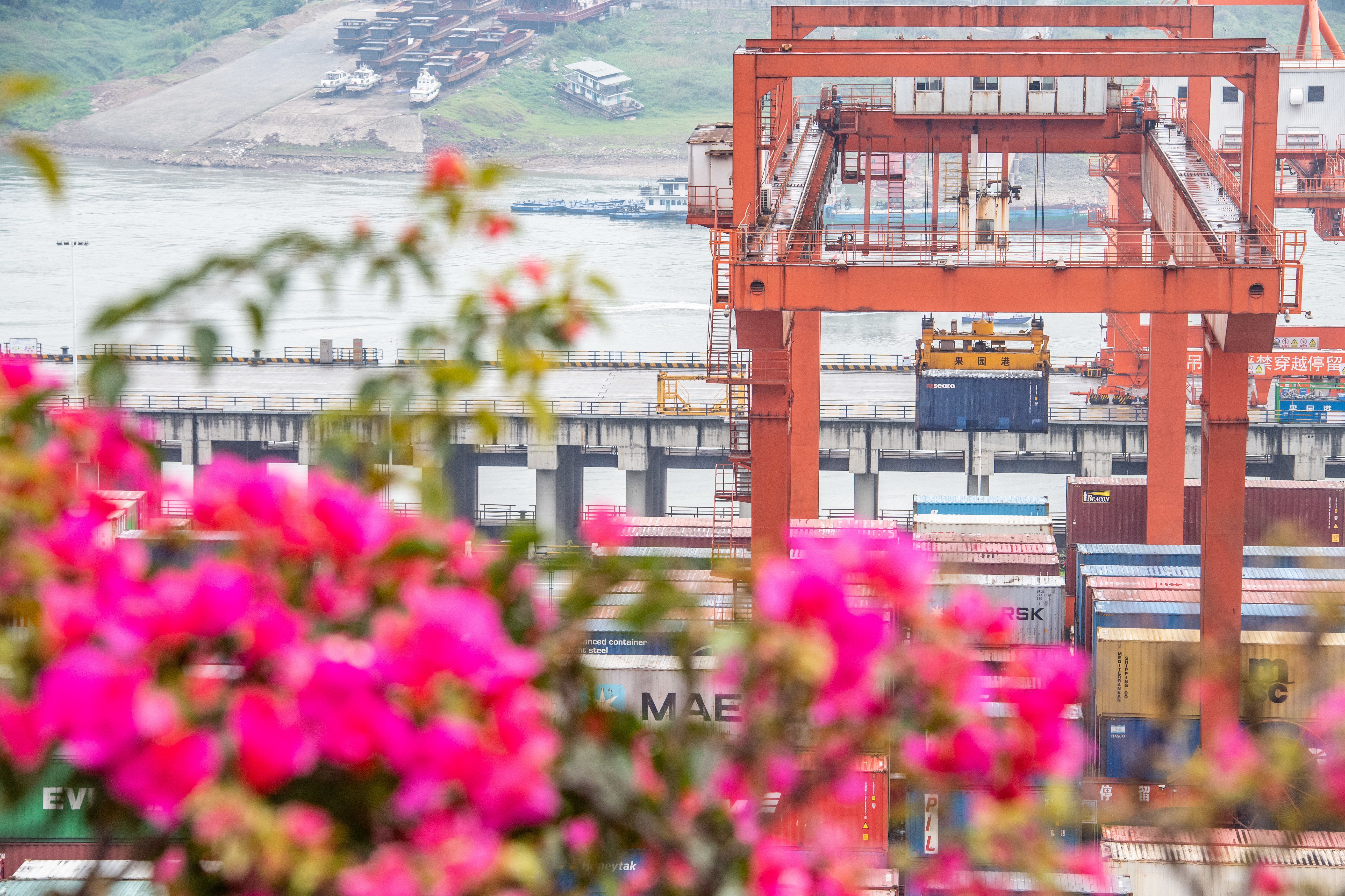 这是4月20日拍摄的重庆果园港。新华社记者 唐奕 摄