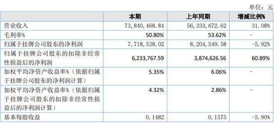 挖贝网4月21日,爱尔发(834118)近日发布2022年年度报告,报告期内公司实现营业收入73,840,468.84元,同比增加31.08%;归属于挂牌公司股东的净利润7,718,538.02元,同比减少5.92%。