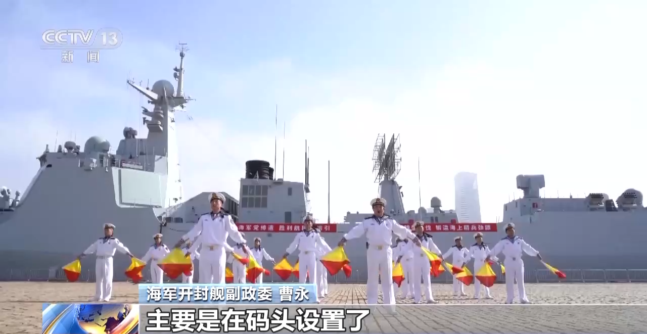 海军开封舰副政委 曹永:整体开放项目分为静态展示和动态展示两个部分。静态展示部分主要是组织民众上舰参观,沉浸式体验我们海军舰艇官兵的工作生活,了解人民海军这些年的转型建设情况。动态展示部分,主要是在码头设置了国际信号旗语和舰艇船艺绳结两个演示科目,参观民众可以与我们的官兵进行互动,也可以实际去体验。