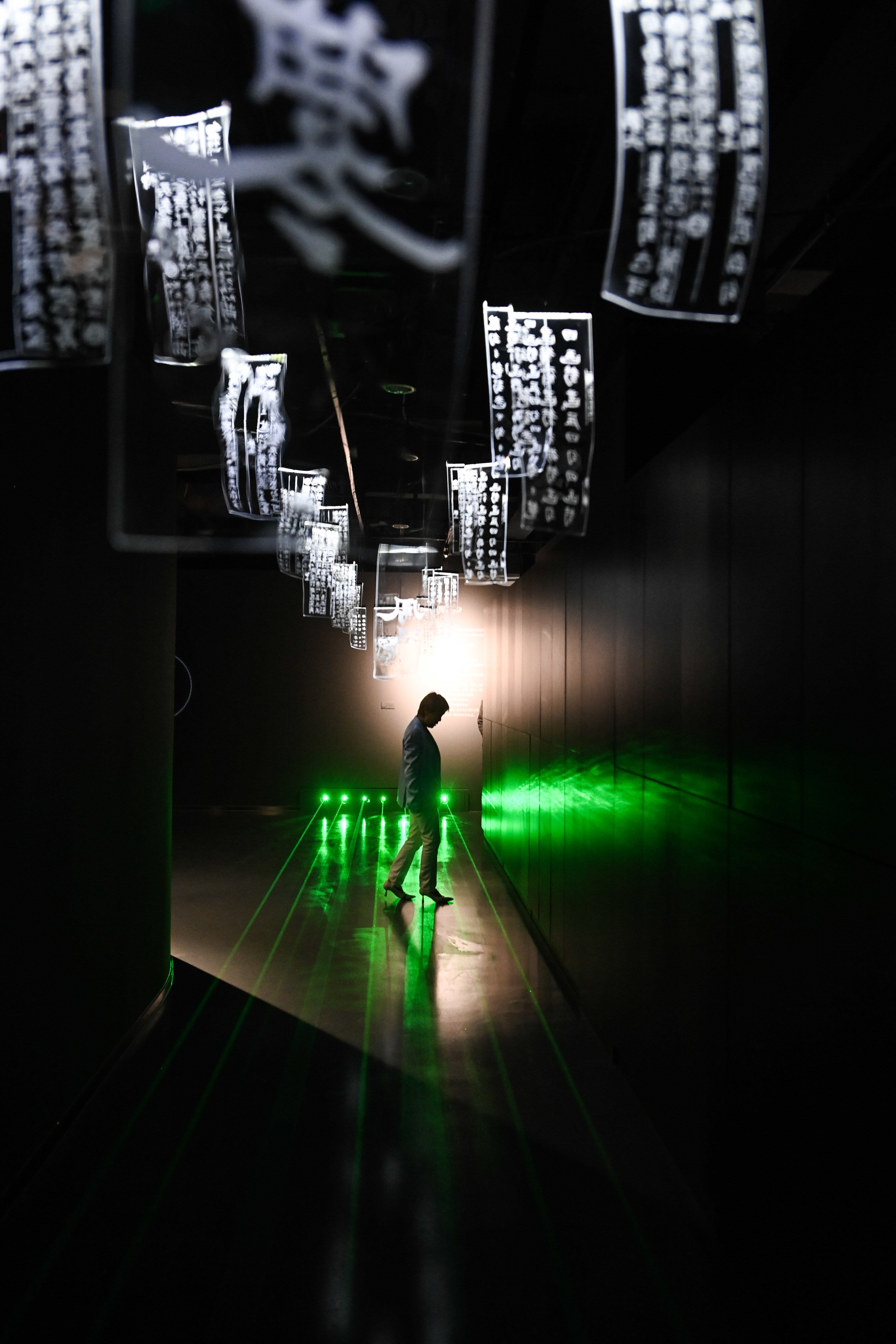 4月21日,一名读者在嘉兴市图书馆元宇宙阅读体验馆内通过触碰不同光线来感受音律的变化。新华社记者 徐昱 摄