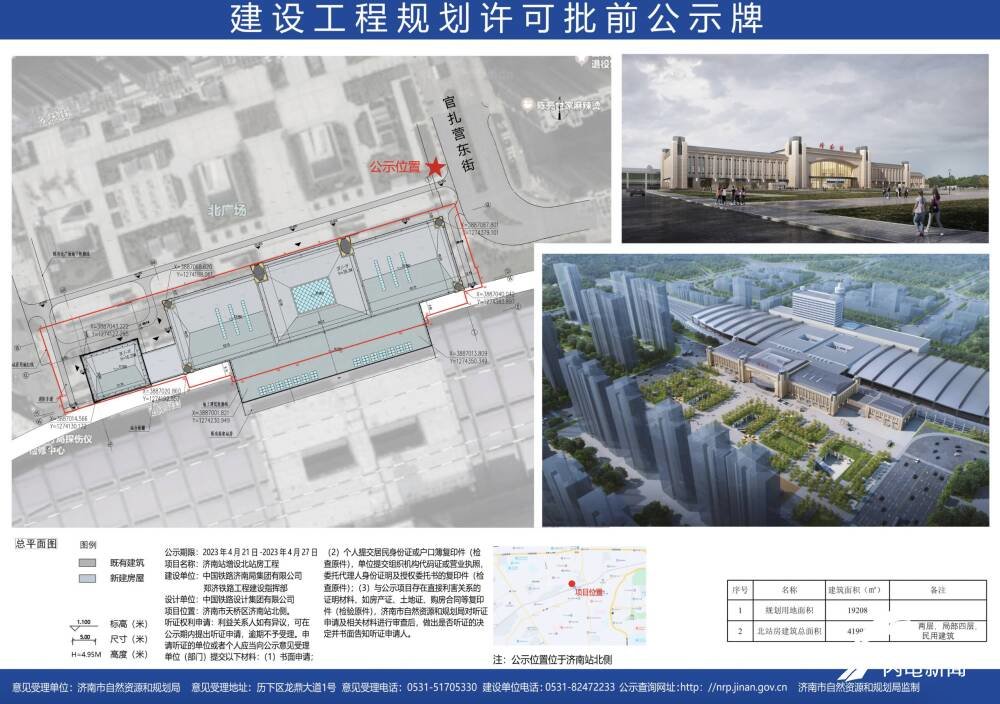 齐鲁网·闪电新闻4月21日讯 今天,济南市自然资源和规划局发布济南站增设北站房工程建设工程规划许可批前公示。