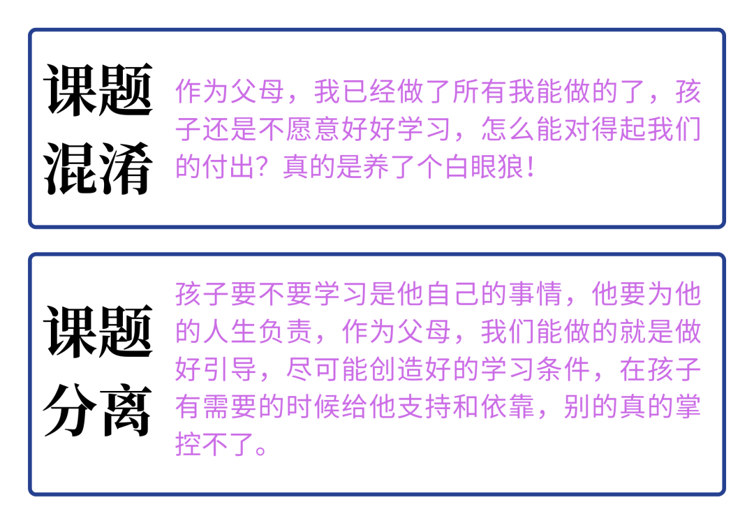如果父母已经给孩子提供良好的学习条件,孩子却不爱学习,父母非常愤怒失望,是因为没有做好课题分离。