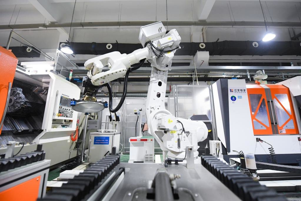 在安徽省芜湖市的一个生产车间里,一台台工业机器人正挥舞着机械臂,进行各种动作的操作演练。这些正在被测试的机器人由埃夫特智能装备股份有限公司研发,将被用于海内外制造业企业的生产线。