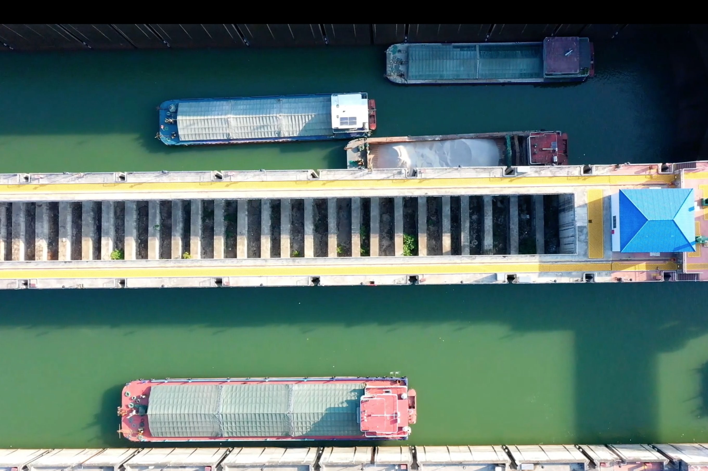 图为西江“黄金水道”上正在通过船闸的货船。黄品贤 摄