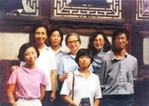 1985年在宫巷11号三落合照(前排左一郑立枚,左二林璎(Maya Ying Lin);后排左一沈孟璎,左二沈季璎,左三张瑞美,左四张明晖(林璎母亲),左五林潭)