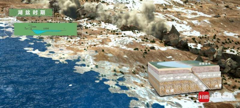 在距今4000万-3000万年左右,随着青藏高原的隆升,地壳物质分别向东向南流展,复杂的构造应力在四川盆地周缘造就了龙门山、大巴山、七曜山和大相岭等多条山脉。四川盆地基本定型,并完成了由湖相盆地到陆相盆地的转变。