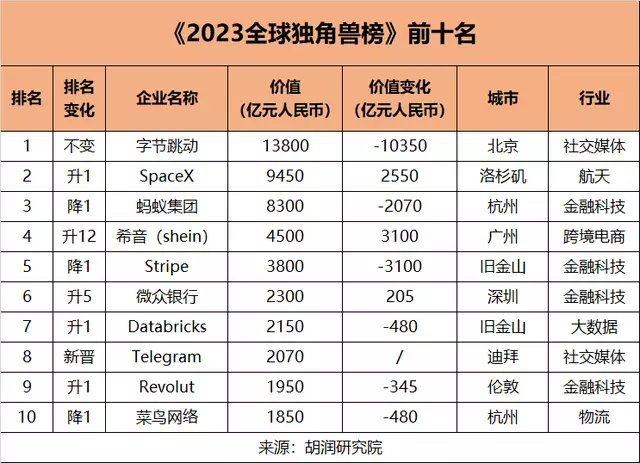 日前,胡润研究院发布了《2023全球独角兽榜》。榜单把成立于2000年之后、估值10亿美元以上的非上市公司定义为“独角兽”企业。
