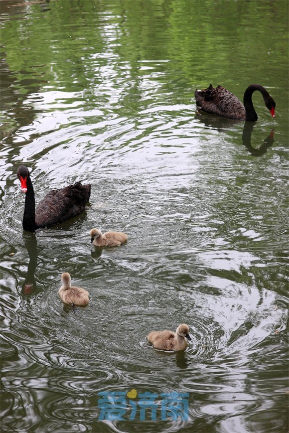 据悉,今春以来,生活在济南野生动物世界里的黑天鹅已自然成功孵化6只小黑天鹅。
