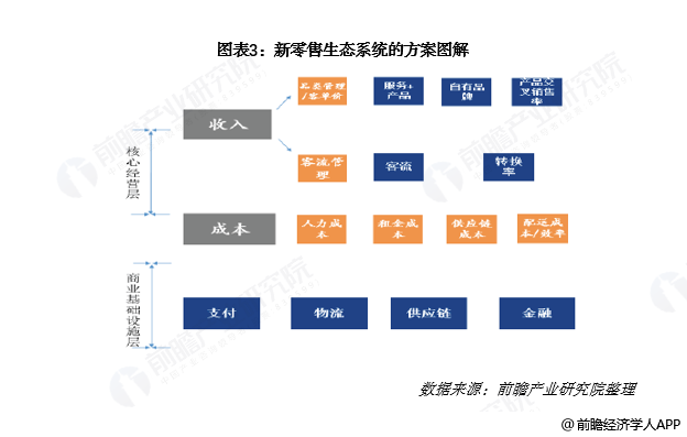 科技与零售的结合使得零售产业的业务逻辑重新升级。后电商时代的新零售革命,本质上通过融合新一代技术(包括人工智能、大数据、saas等技术)、全方位的改造和赋能传统线下零售业态。回归到商业本质,零售企业的经营按照财务模型分析,无非包括收入—费用—成本三项。零售新物种的创新演进路线,同样是围绕着收入、费用、成本这几个大方向,在客流经营、品类运营、费用管理等环节切入,通过线上、线下融合,叠加技术和模式的创新,获得了坪效、人效的双升,实现对传统零售业态的改良和突破。前瞻产业研究院认为,新零售经营的核心仍然是如何链接好人和商品(包括服务);而支付、供应链、物流等基础设施将成为新零售的支撑层,驱动产业不断进化,当然反过来新零售革命也将为这些产业带来新的商机。科技赋能引领的新零售革命已经开始,只不过有的领域改变得快,有的领域被改变得慢,未来传统的零售一定会和新零售逐渐融合。