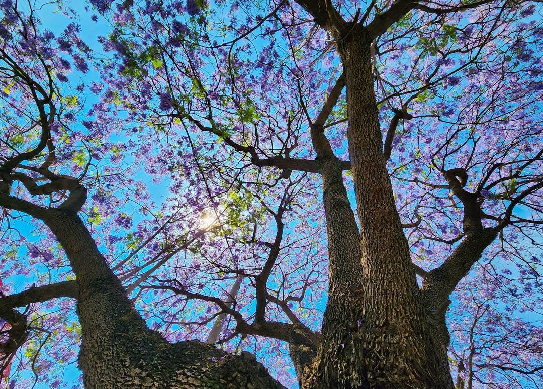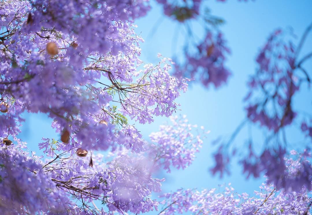 蓝花楹在阳光下尽情绽放