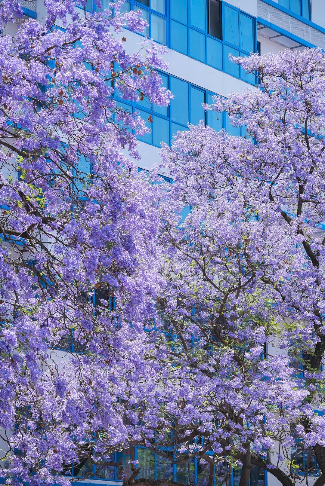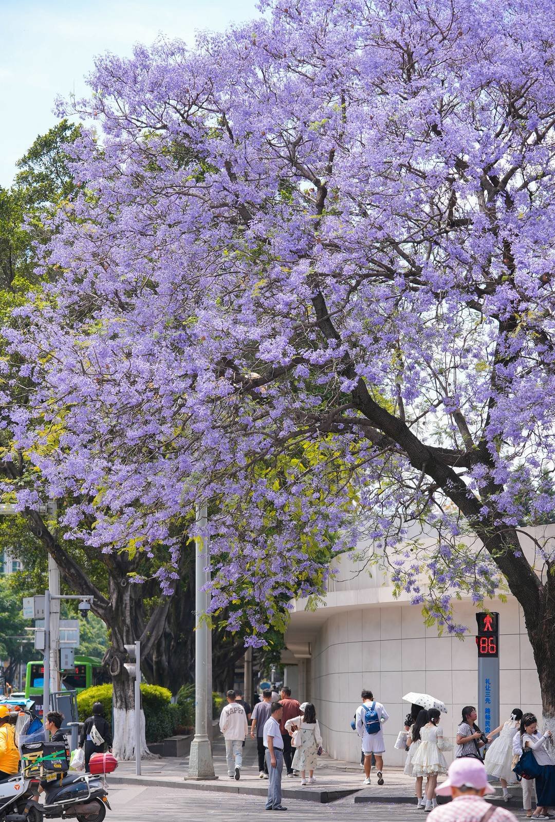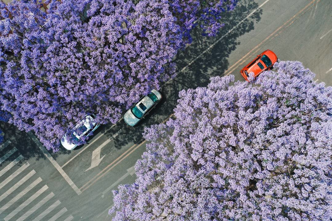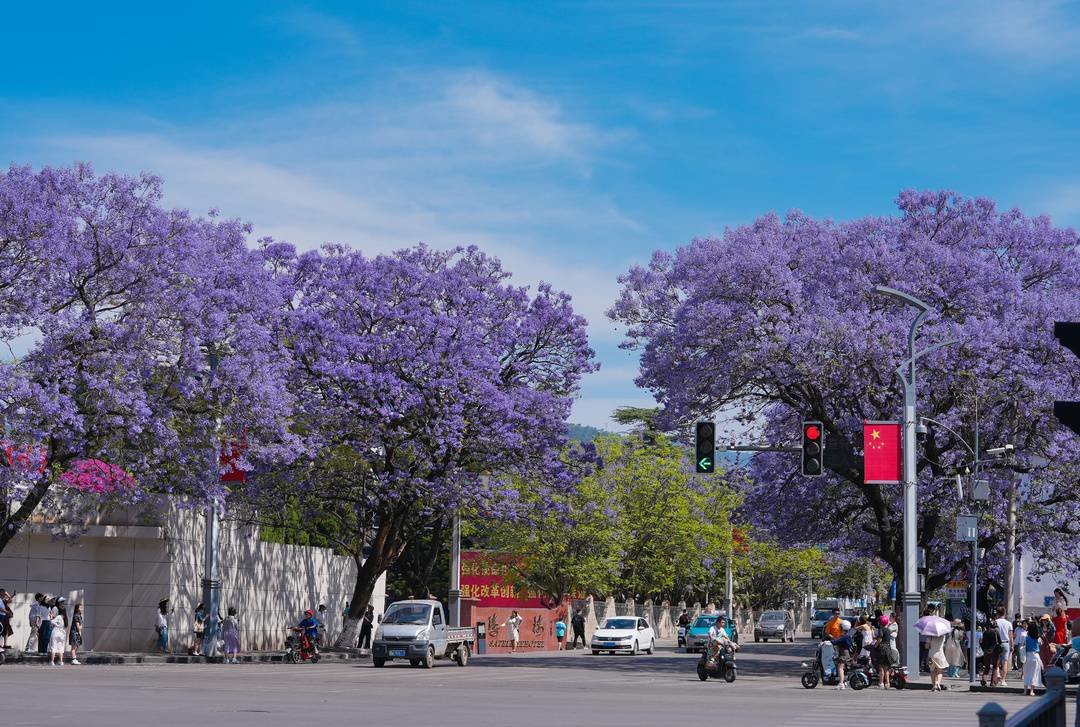 蓝花楹点缀着春日好风光