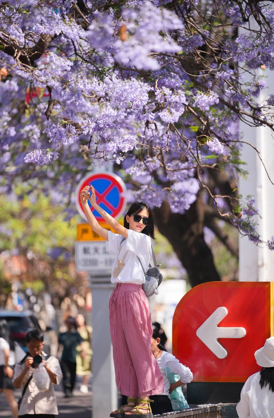 阳光下,花影与人影交织,这是西昌4月的专属浪漫