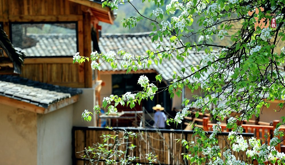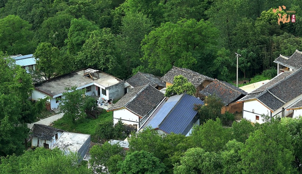 山水之间,一个个青瓦白墙、绿树掩映,家家门前花草点缀、绿树遮荫。