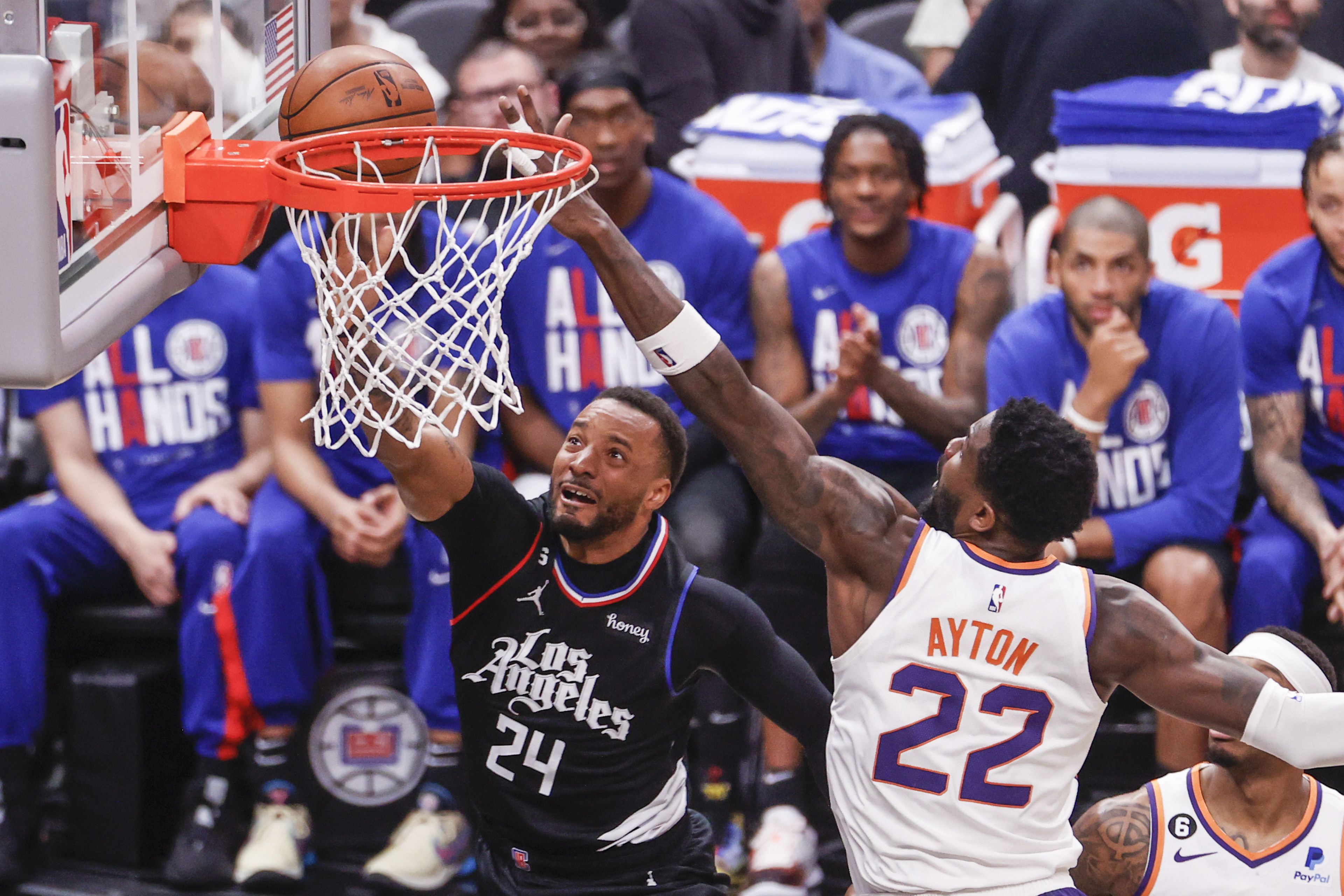当日,在2022-2023赛季NBA季后赛首轮第四场比赛中,菲尼克斯太阳队客场以112比100战胜洛杉矶快船队,总比分3比1领先。