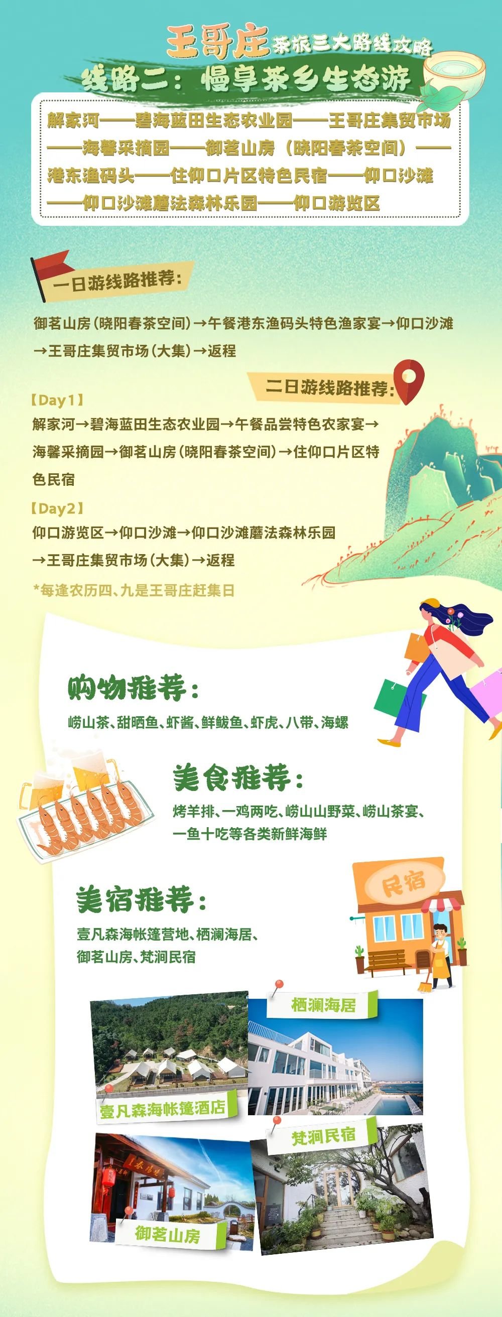 以上活动通知详情请关注街道官微“山海小城王哥庄”,等您来打卡“茶乡微度假”。
