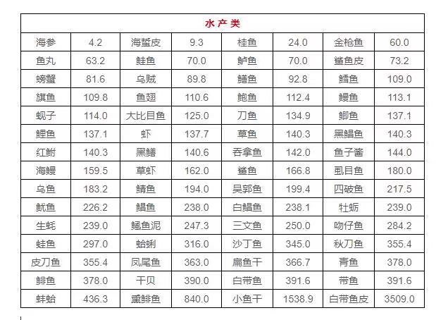 有研究发现,水产品的总嘌呤量比畜禽肉略高,属于超高嘌呤的水产品主要有带鱼、鲢鱼、鲅鱼、凤尾鱼、鲶鱼、基围虾、沙丁鱼、鲱鱼等,通常嘌呤含量大于150mg/100克。
