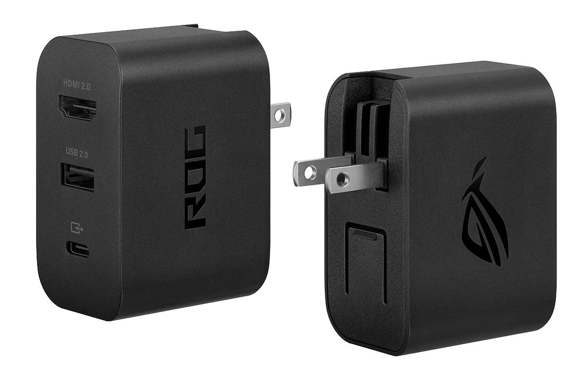 和我们常见的充电器一样,ROG HDMI Charger Dock也是一个通体黑色的外观,左右两侧带有ROG的LOGO。而重点则在它的I/O接口上,分别有Type-C、USB 2.0和HDMI 2.0。根据SnoopyTech在回复的描述,它能够同时承担连接大屏幕和充电的功能,而且在边玩边充的时候,并不会让电池掉电。