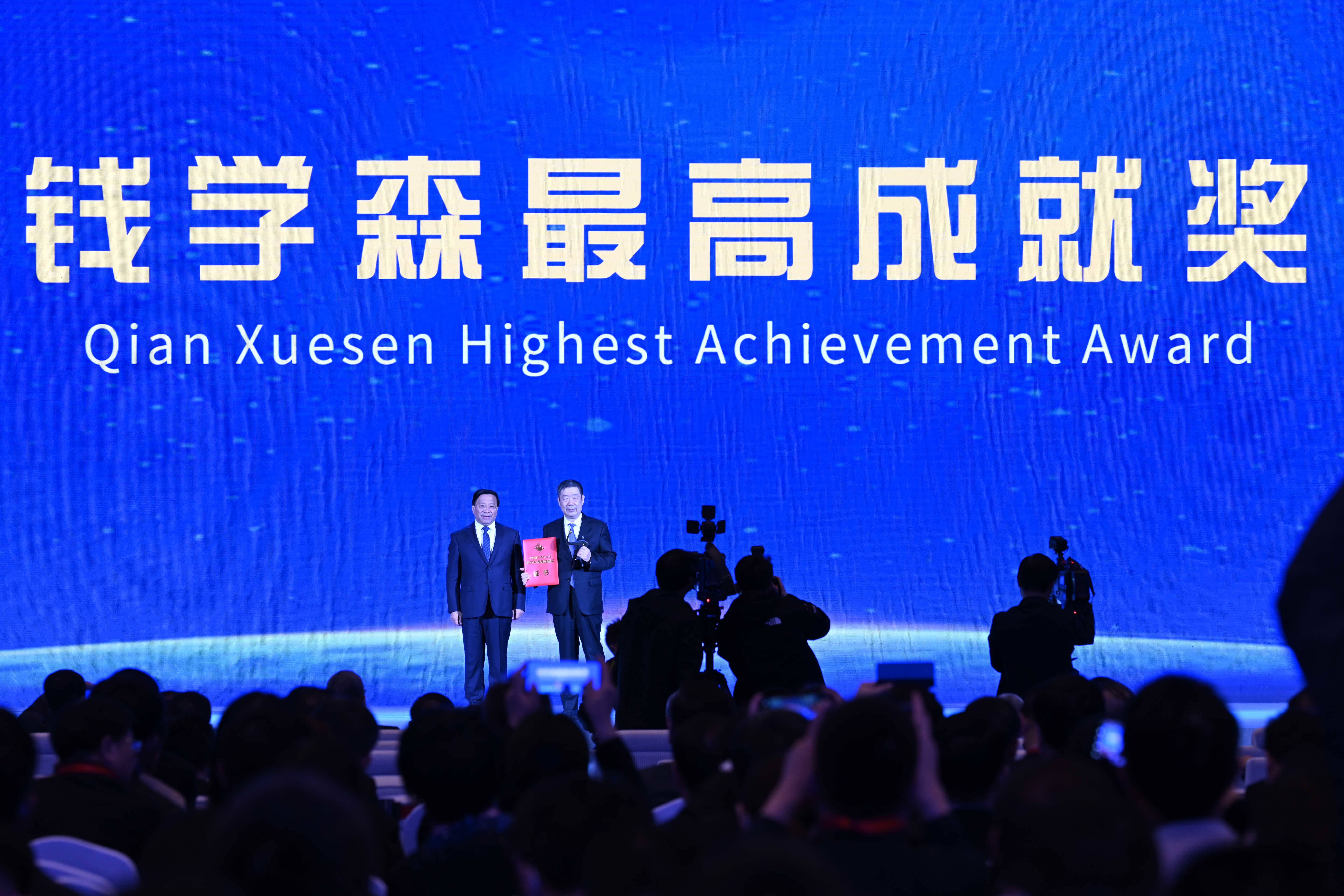 4月24日,中国工程院院士、中国载人航天工程总设计师周建平获颁“钱学森最高成就奖”。新华社记者 黄博涵 摄