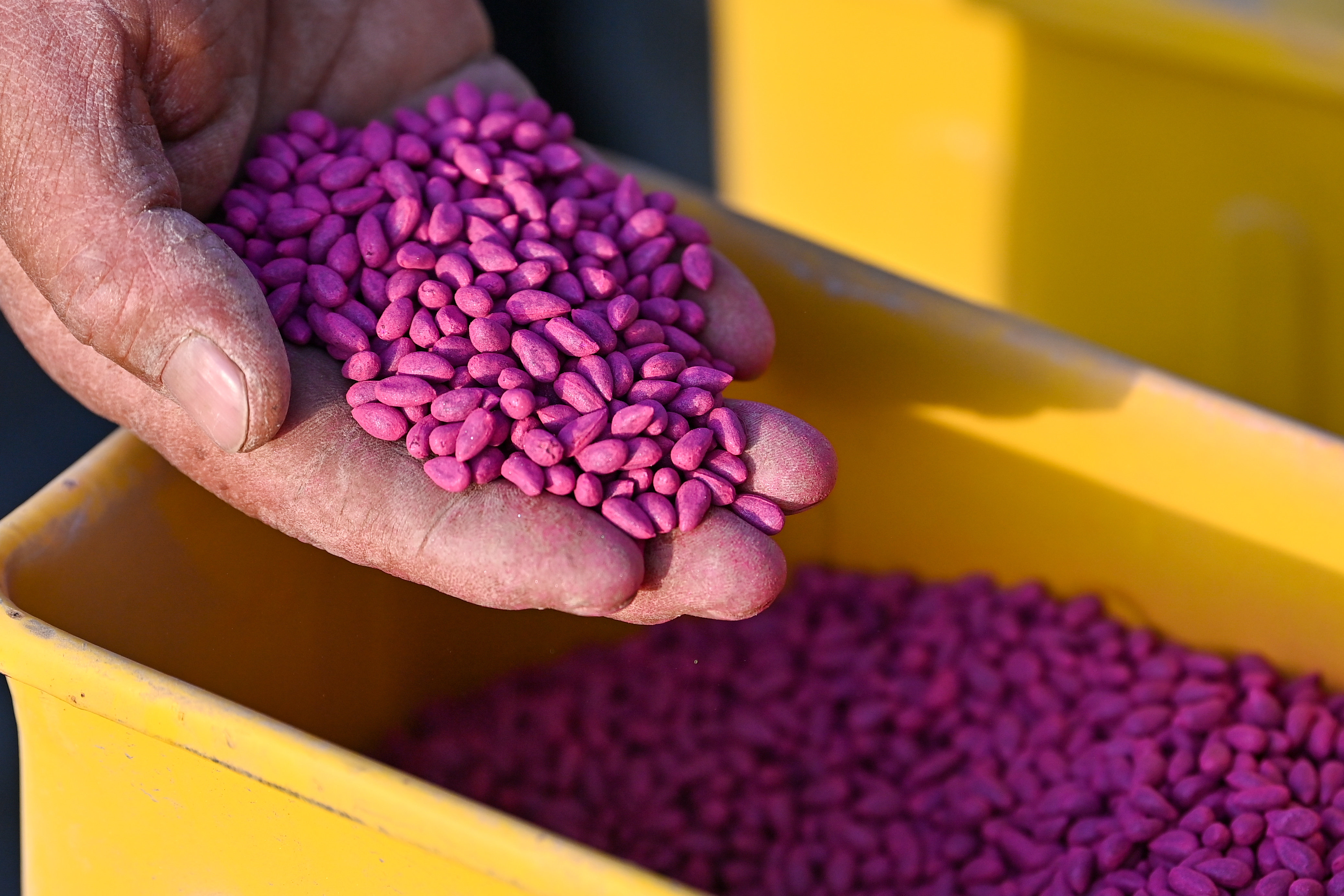 新疆麦盖提县,棉农查看棉花种子(4月2日摄)。新华社记者 丁磊 摄