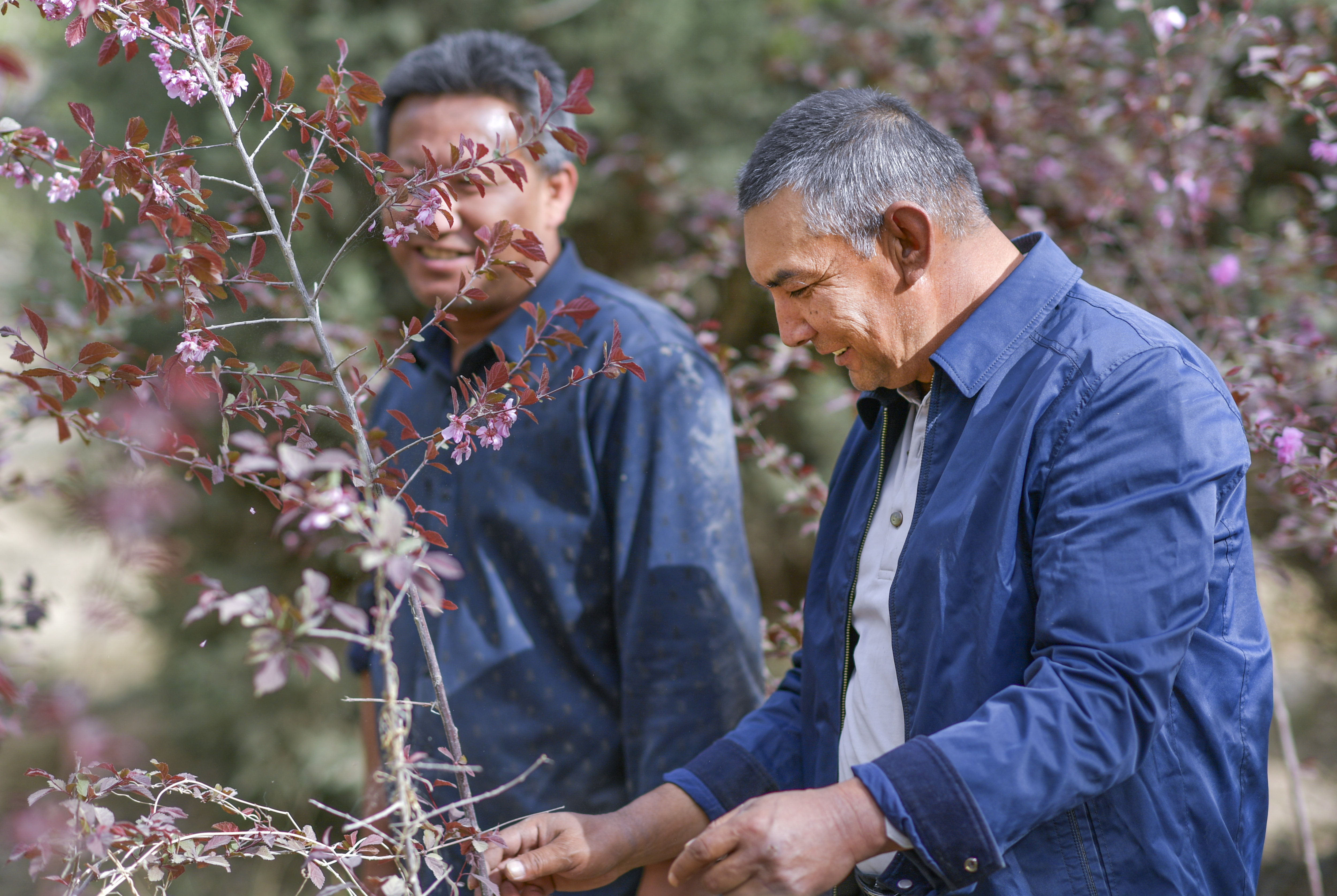 新疆叶城县一处种苗场内,人们在挑选树苗准备栽种(4月16日摄)。新华社记者 王菲 摄