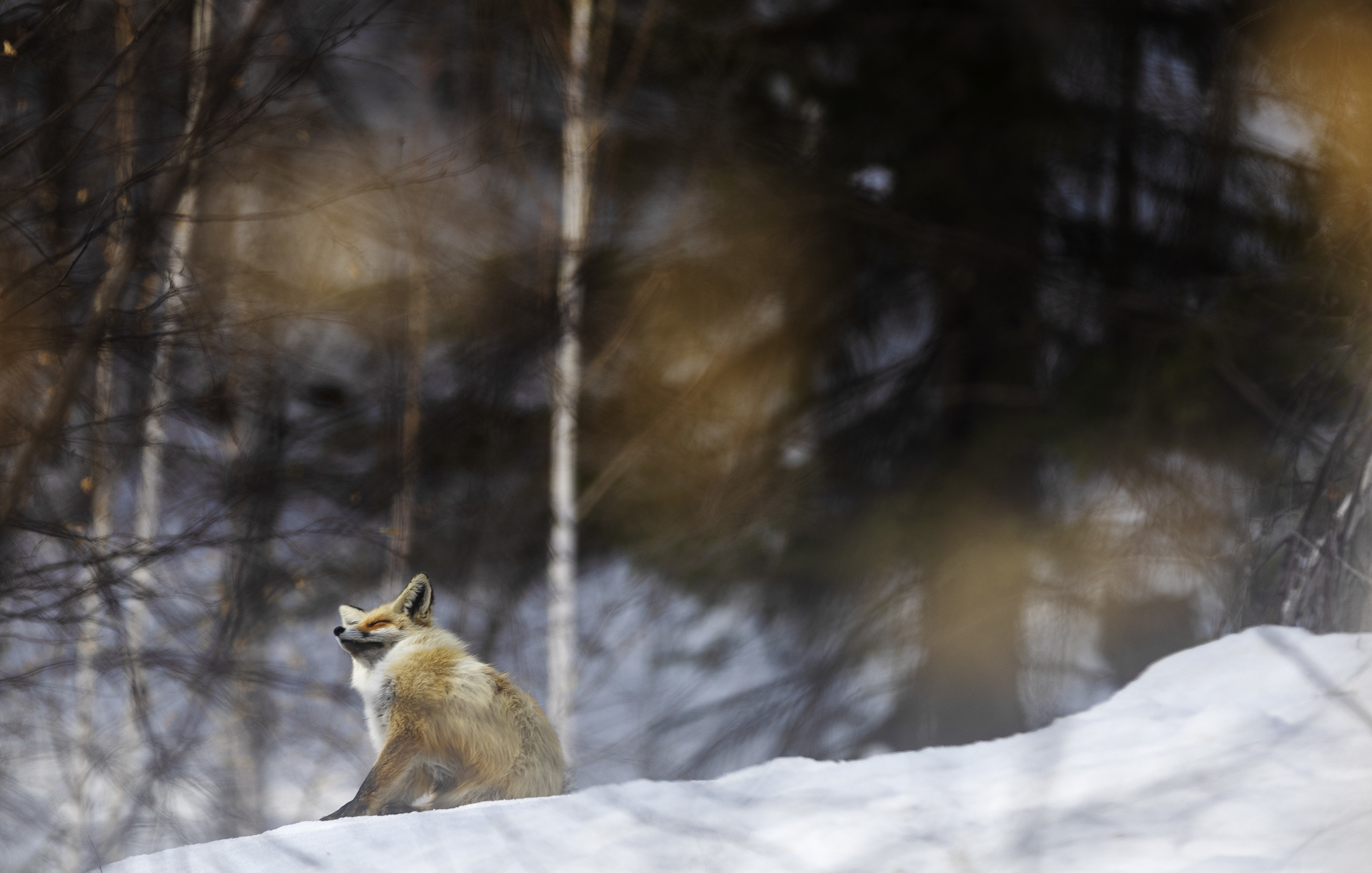 在新疆喀纳斯风景区小憩的赤狐(3月29日摄)。新华社记者 费茂华 摄