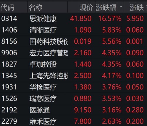 新冠二次感染忧虑令医药股集体走高。思派健康涨近17%,三叶草生物涨11%,先声药业涨超6%,金斯瑞生物、乐普生物、云顶新耀等涨超5%。
