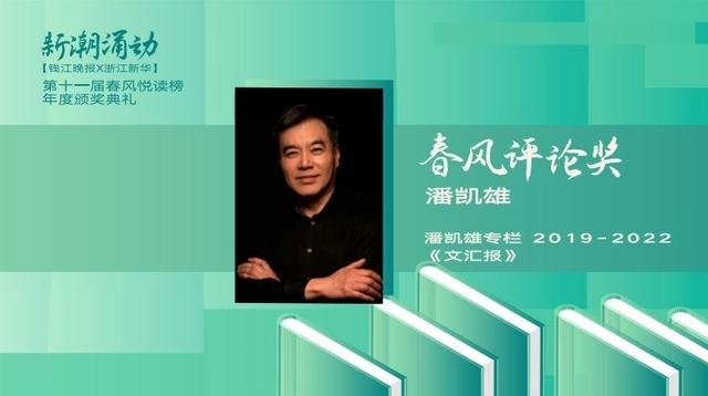第十一届春风悦读榜年度颁奖典礼日前在杭州举行,知名评论家潘凯雄在《文汇报》开设的专栏“‘第三只眼’看文学”被授予首次设立的春风评论奖。