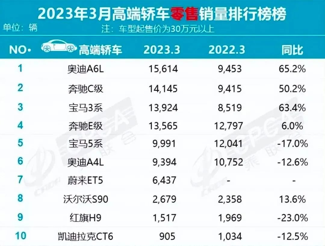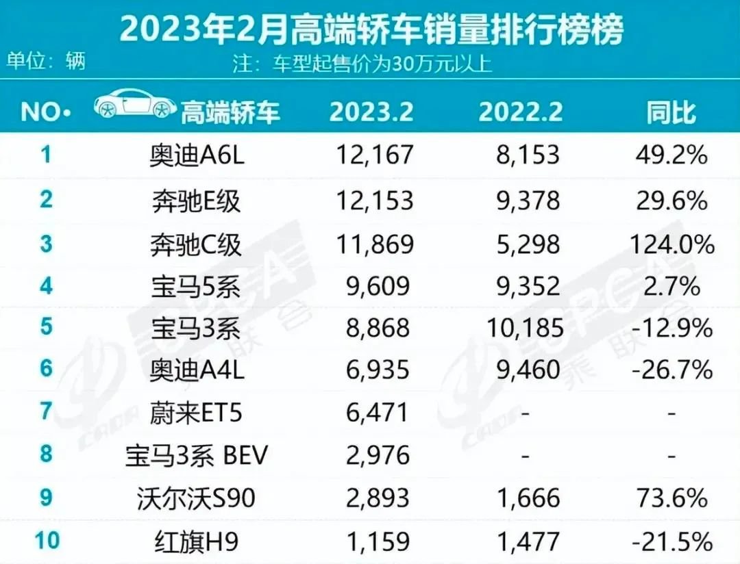 无论是今年2月,还是3月的高端轿车销量,前六、前七基本是BBA霸榜。