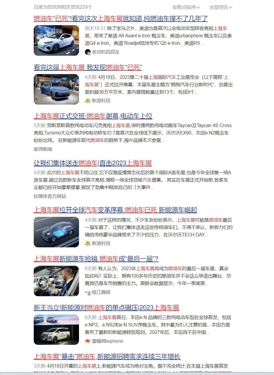 不少业内人士开始声调一致的唱衰燃油车:表示看完这次车展,就知道“燃油车“已死”!纯燃油车撑不了几年了”、上海车展把燃油车逼到了墙角、燃油车进入倒计时、这可能是燃油车最后一次车展了等等。