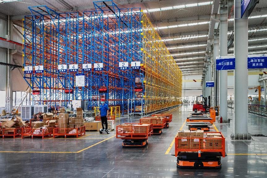 近日,位于郏县经济技术开发区的天晟电气有限公司内,工人在智能立体化仓库忙碌。