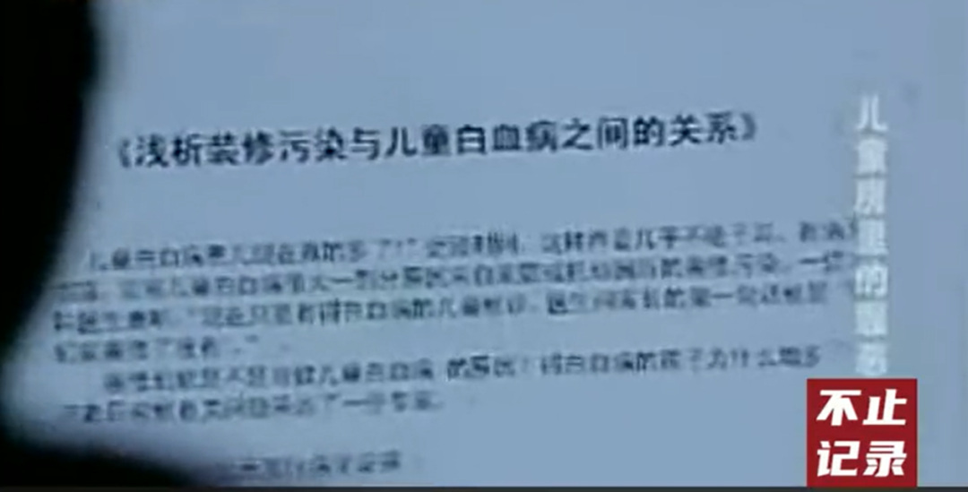 那晚,范星在医院值班,吴忠一个人失魂落魄地回到家。他打开范星的电脑,映入眼帘的是一篇名为《浅析装修污染与儿童白血病之间的关系》的论文。