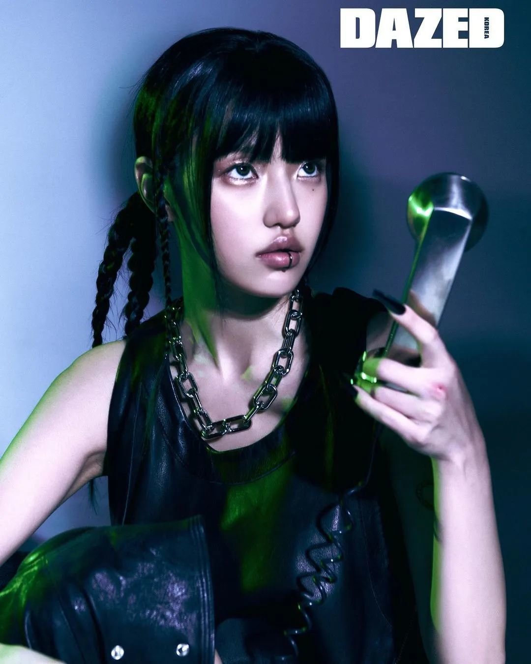 在最近与 DAZED 的拍摄中,iiso 也尽情展现了自己的时尚表现力;唇环、大铁链加上皮衣,Y2K 这块拿捏得死死的。