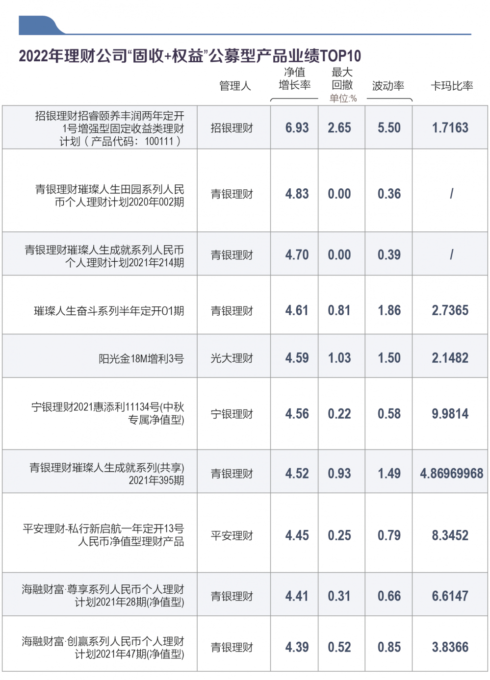 “固收+权益”理财风云榜:招银理财收益6.93%,青银理财霸榜6席