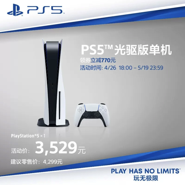 不过从索尼官方店铺的活动公告来看,这次降价似乎并不是永久降价,仅持续到5月19日23:59,因此对于想要购买这一产品的玩家而言,目前相对是比较适合入手的时机。不过在一些第三方平台,PS5外版机型光驱版售价仅需3000元左右。