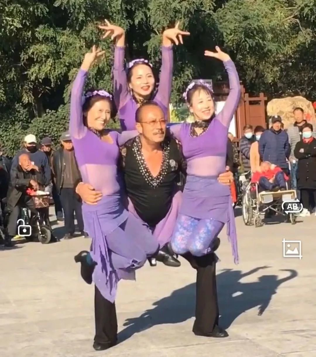马德胜优美而激情的舞姿很难不让人联想到前段时间爆火的沈阳公园老大爷,以一己之力扛起三个老太太。