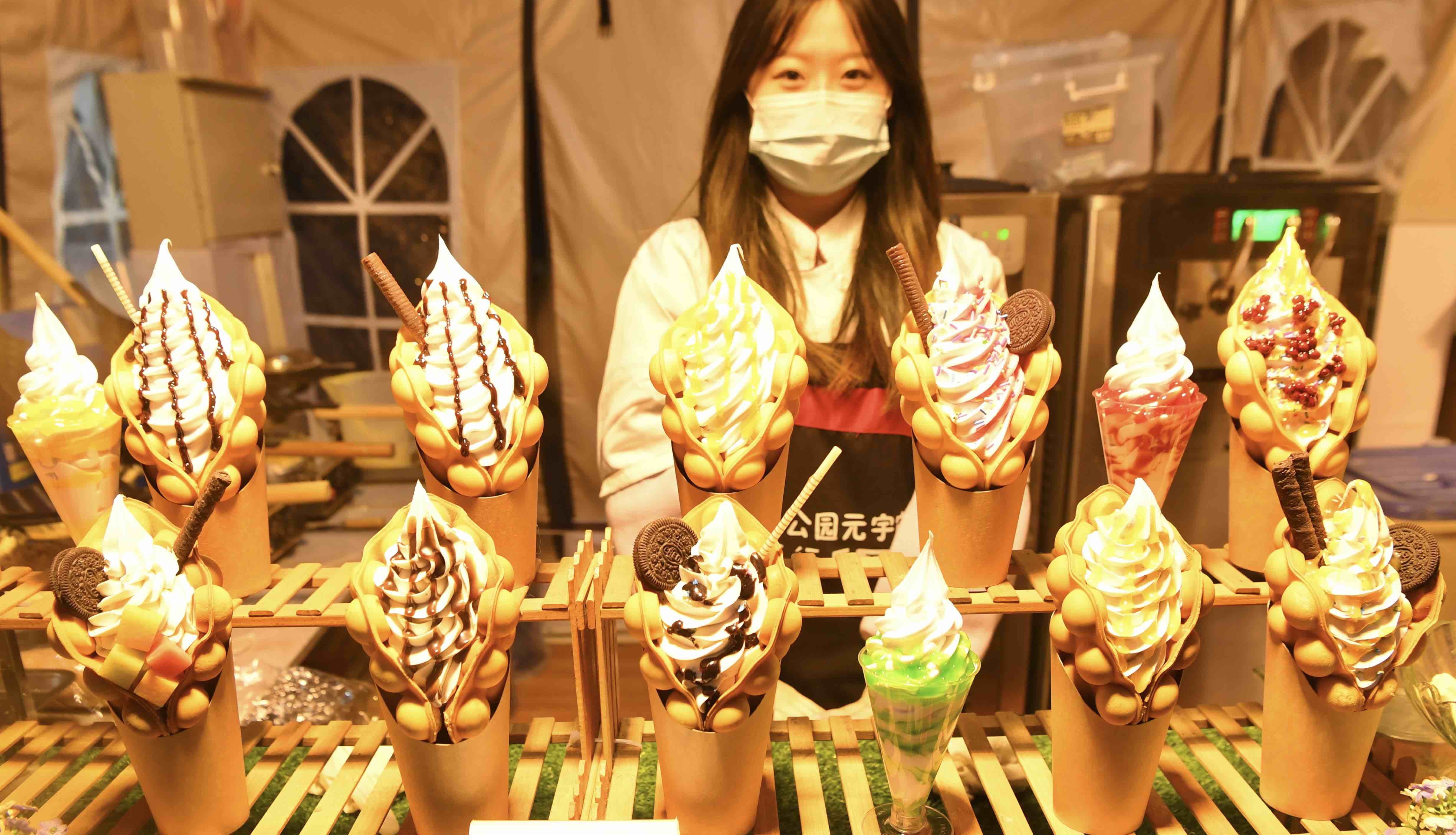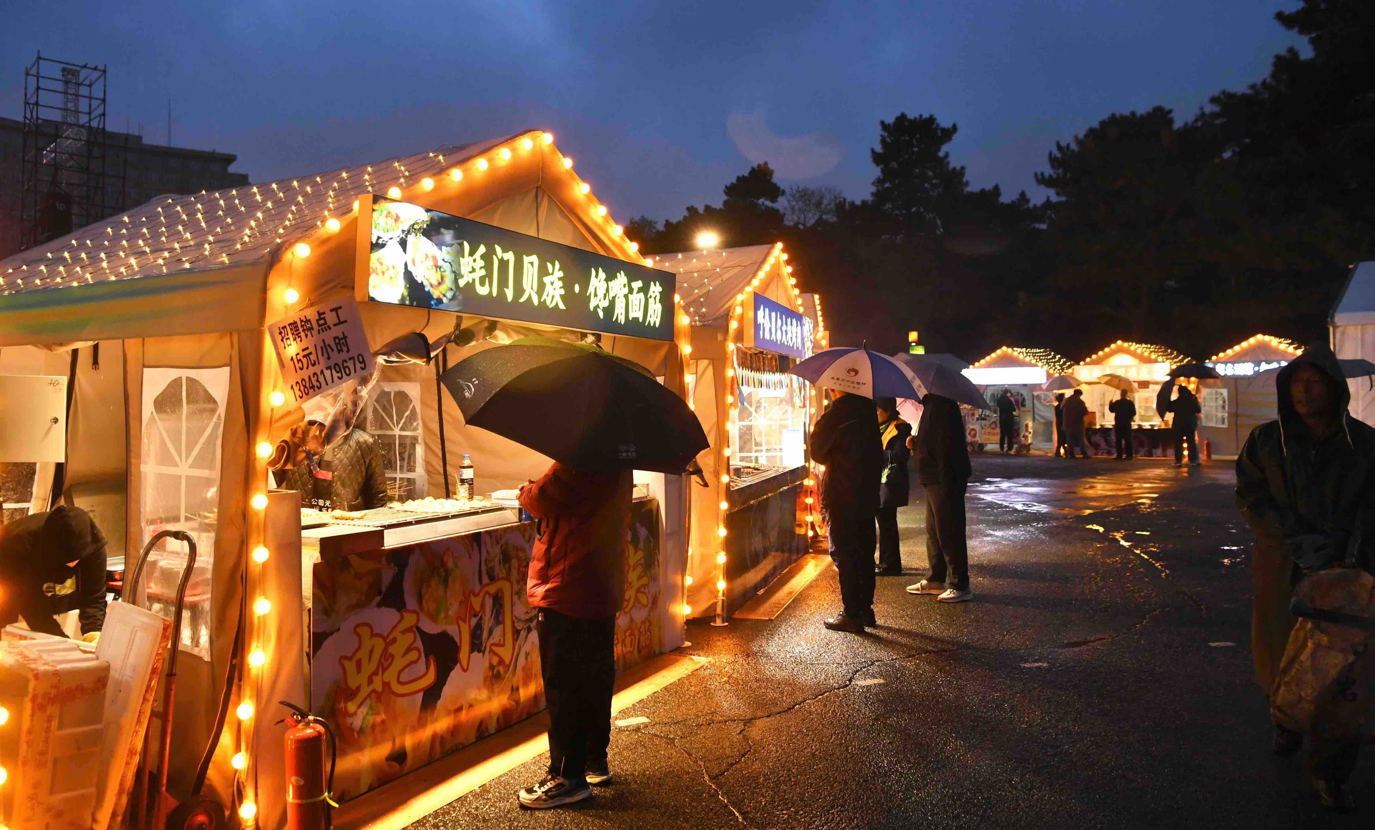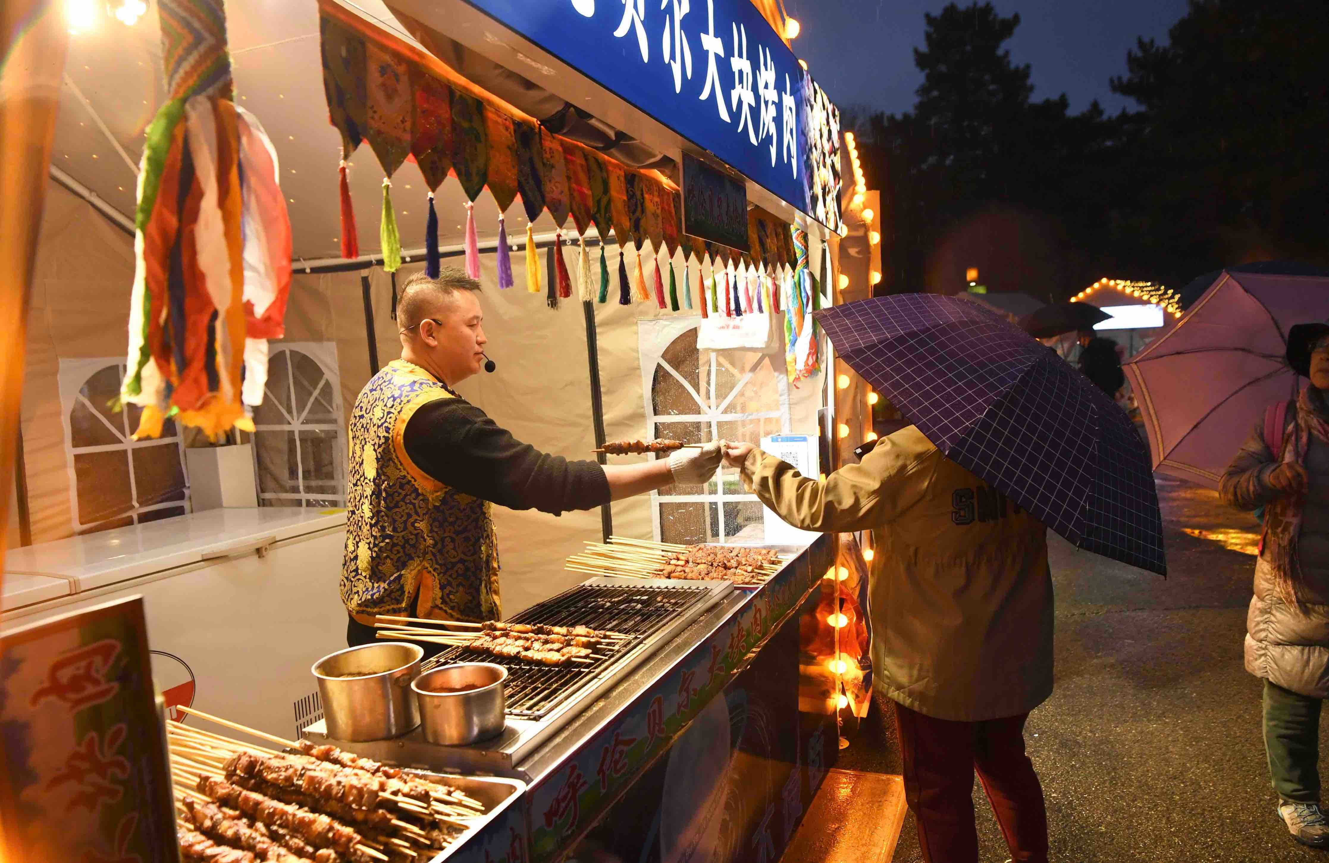 元宇宙不夜街位于南湖公园四号门处,占地面积3000平方米,计划每天营业时间从18时至晚23时。29日下午长春开始降雨,元宇宙不夜街首日的客流不多,不过现场的潮流美食还是吸引了一些市民冒雨品尝。烤鱿鱼、炒粉、烤生蚝、章鱼小丸子、旋风薯塔、钵钵鸡、烤肉串、网红烤菠萝、蛋仔冰淇淋等,香气四溢。游客还能品尝到西双版纳风味的凉拌水果等。全国各地风味的美食汇聚于此,令人垂涎欲滴。