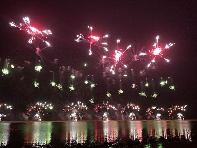 金山城市沙滩因其天独厚的的烟花燃放条件,观众视野极佳。烟花倒映在广阔的海平面上,美轮美奂,精彩绝伦。音乐烟花节演出以浩瀚夜空为画布,以绚烂烟花为画笔,在水上、低空、中空、高空的绘画出一副立体烟花美丽画卷,演绎出美妙浪漫的“海上声光秀”。