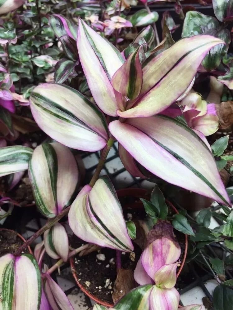 平常我们都是将吊竹梅养成吊盆植物的,悬挂在窗台或阳台上养护,其实,它原本就是生长在树荫下的,对光照需求不多,喜欢一点点散射光或者是凉爽遮阴的环境,如果你家树阴下是要布置一些观赏植物,那吊竹梅就是不错的选择,它的叶片上有这三色的斑纹,叶子的背面是紫色的。