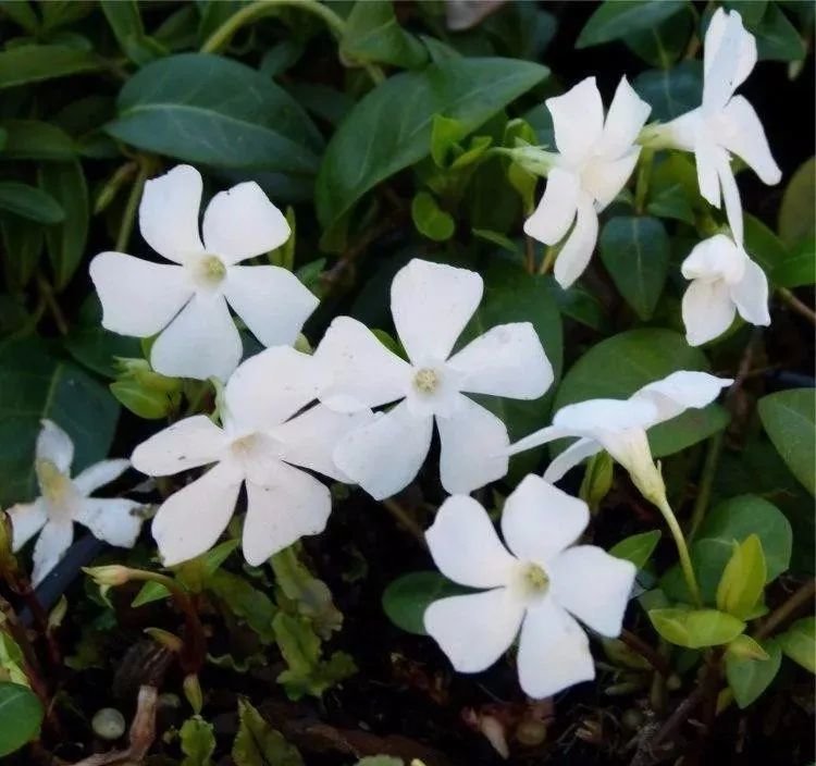 花叶蔓长春很适合布置在院子里,它的植株特别低矮,可以匍匐在地面上生长,也可以攀附生长,对环境适应能力极强,对土壤也不挑剔,在阳光较多和遮阴处都能生长,而且有较强的耐寒能力,在零下7度左右都能存活。