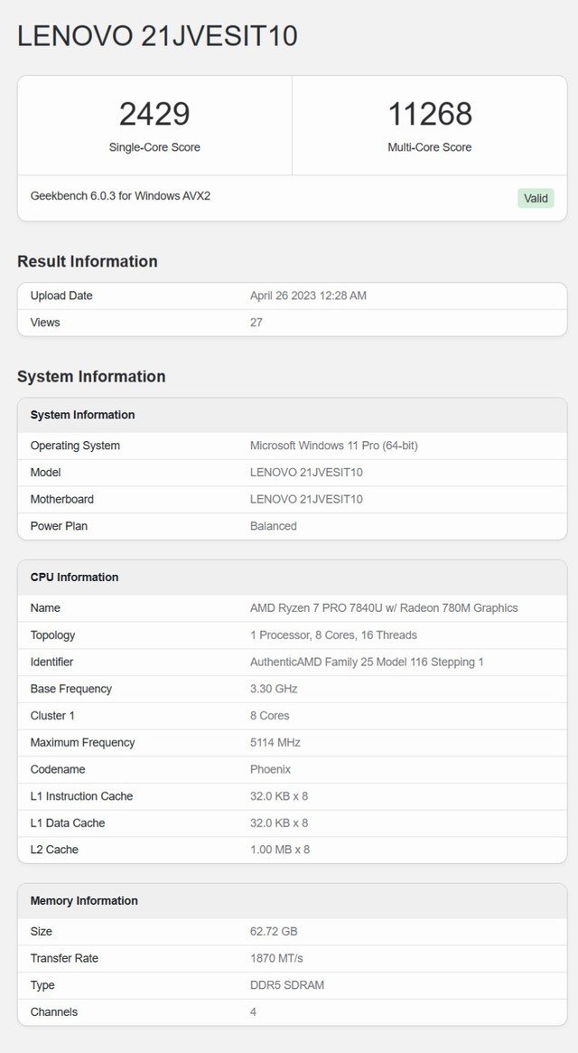 AMD Ryzen 7 Pro 7840U 是一款专为手持设备和轻薄笔记本电脑设计的处理器,运用了 Zen 4 架构的 8 核 16 线程 CPU 与 RDNA 3 架构的 Radeon 780M iGPU。近日,这颗处理器在 Geekbench 基准测试平台上亮相,成绩显示其性能相当于高端台式机 CPU。
