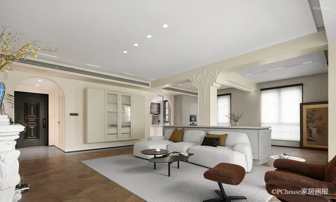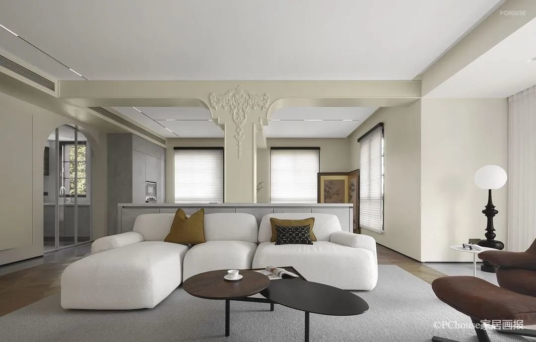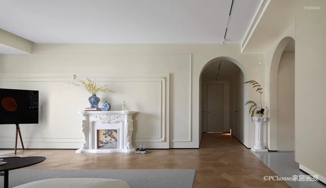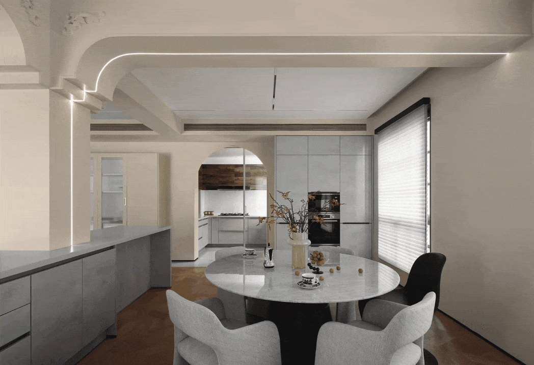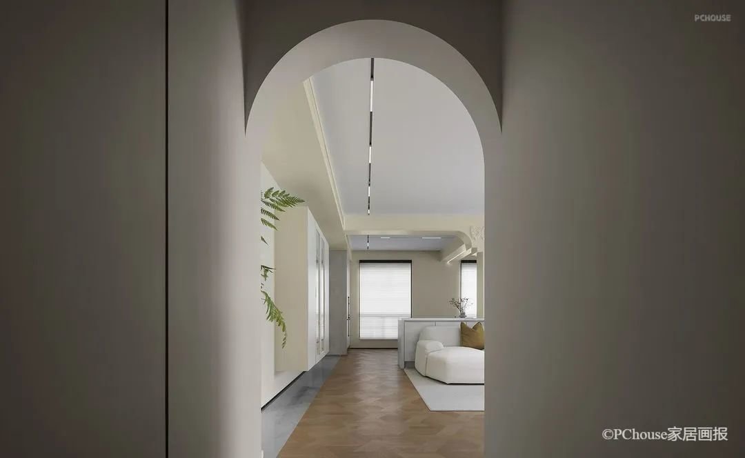 极具法式优雅与复古浪漫的拱形门,是天然的框景器,家中的每一处流连,移步易境。
