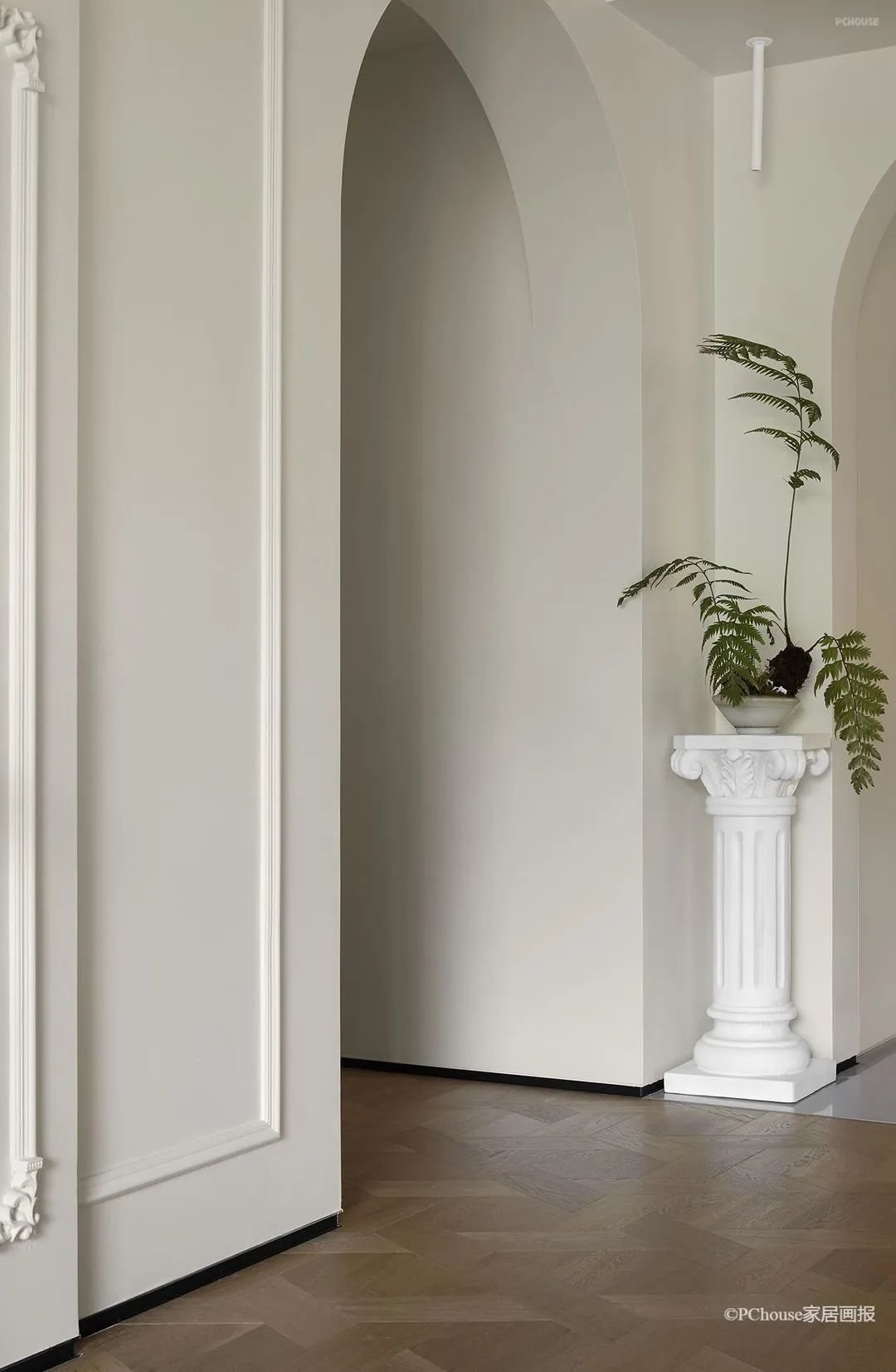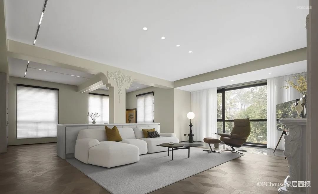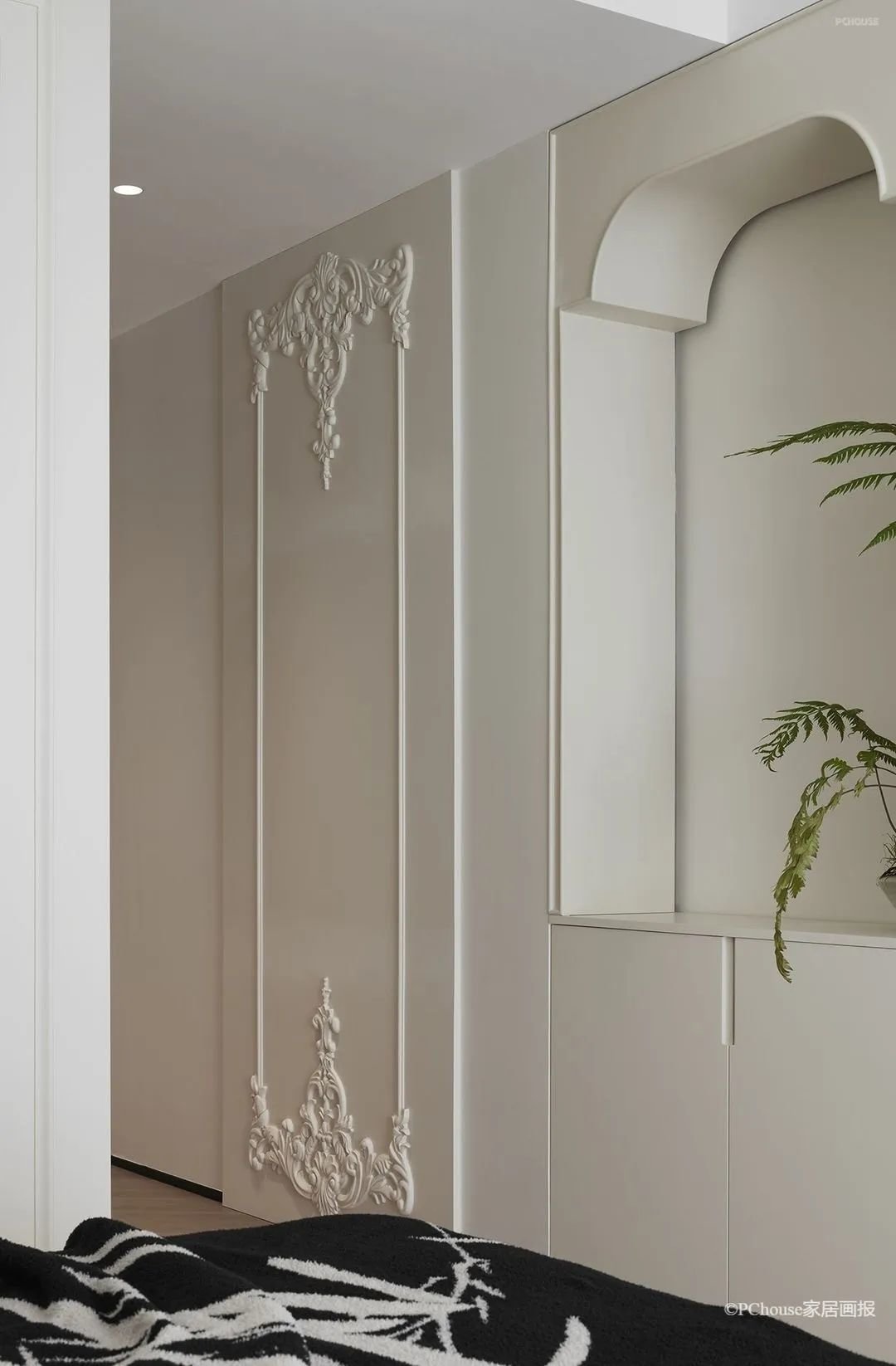 极具法式优雅与复古浪漫的拱形门,是天然的框景器,家中的每一处流连,移步易境。