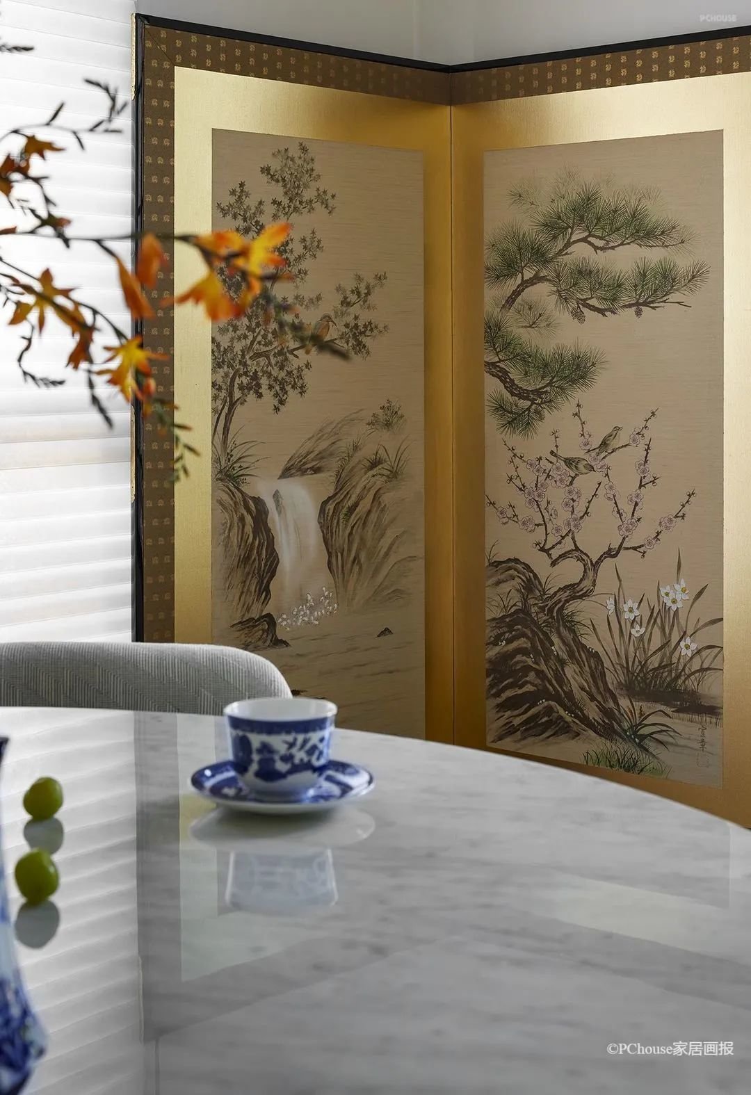 即使是烟火处,也彰显着审美的情趣与格调。山水花鸟的意境,是典型东方风韵的精神表达,却又不被时间的痕迹拖累,以与当下生活方式匹配的场域同频共振。