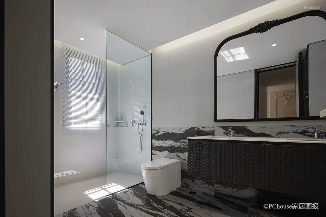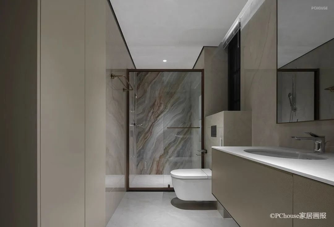 木质与布艺的随性温柔,给了亲子相处提供最轻松惬意的共度氛围,石材与镜面的干练,则让生活的调性一眼可见。