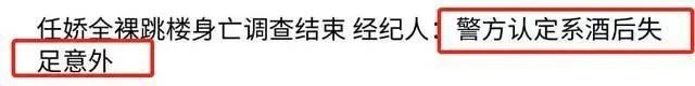 就在大伙猜测纷纷时,警方给出了准确回应,表示任娇是因为过量饮酒才会出现“坠楼意外”,言外之意当然就是和其他人无关。