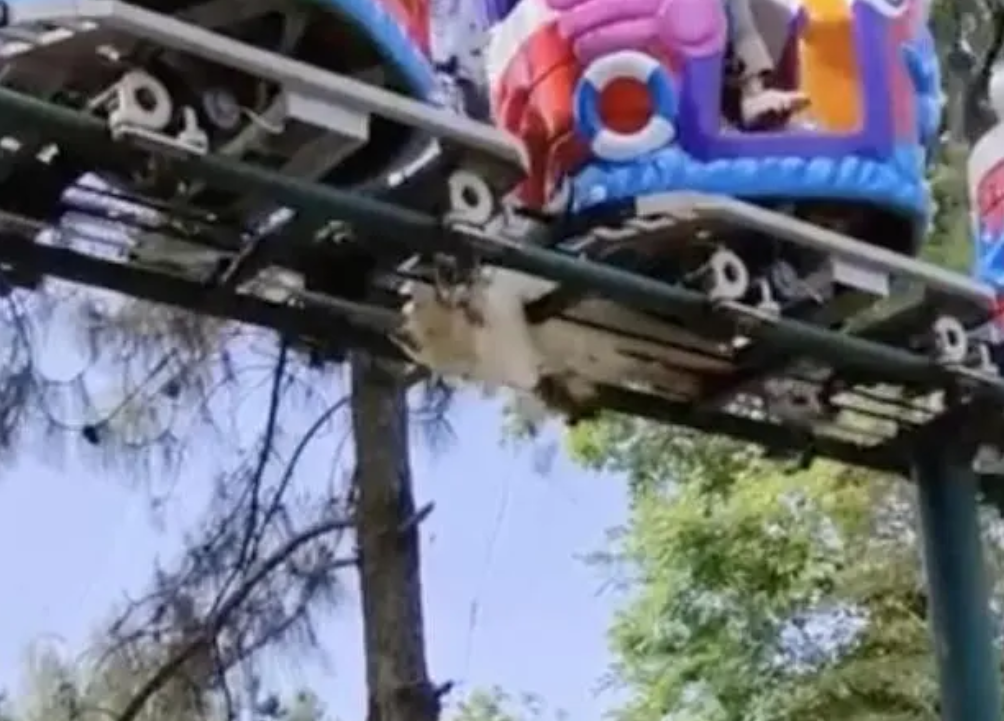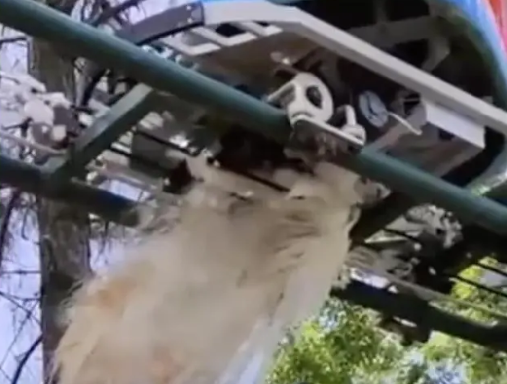 从现场视频可以看到,轨道上载人的缆车正在前进,一只白孔雀夹在轨道中被多辆缆车碾压,羽毛随风到处飞。